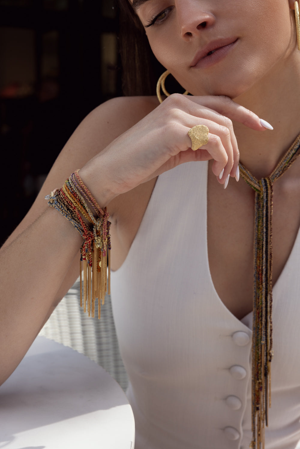 Inspired by the friendship bracelets of Carolina's youth, these meaningful pieces feature diamond-cut 18k gold chain and hand-braided silk wrap bracelets, each complimented with a sentimental charm. Available in a variety of colors, it’s a go to option for first time collectors.Inspired by the friendship bracelets of Carolina's youth, these meaningful pieces feature diamond-cut 18k gold chain and hand-braided silk wrap bracelets, each complimented with a sentimental charm. Available in a variety of colors, it’s a go to option for first time collectors.